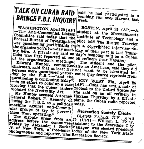 Types of operators like Sturgis and Rorke, and Cuban exiles like Varona were not the only sorts of connections that Malone was forging in this time. He was circulating from New York to Texas to Florida and back again. A FBI memo from late March, 1962 gives a peek into his itinerary: on the 15th, he traveled to DC with Kleberg so the rancher could meet with Vice President Johnson to discuss the “Cuba problem and what course of action the US was going to follow in this matter”. Johnson told Kleberg that Kennedy was committed to a path of action where the island was concerned, but it would not entail using the US military. Five days later, Malone met with a CIA officer named Raford Herbert, the assistant to the high-ranking CIA chief of Western Hemisphere Division, J.C. King (who likely remembered the Klebergs from the days of Nelson Rockefeller’s CIAA-Brazil push). Herbert recommended that Malone and his associates – the Klebergs and the Riondas, no doubt – organize a group of senators “who are close to perfect agreement with ‘New Frontier’ and put pressure on Kennedy”.